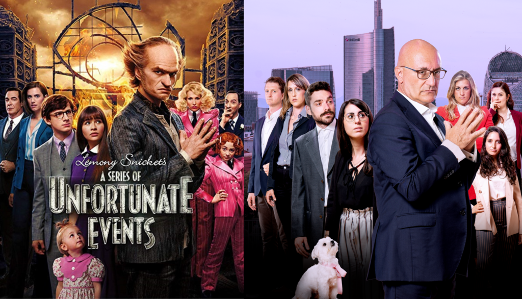 Photo compositing replicando la copertina di "Una serie di sfortunati eventi" di Netflix