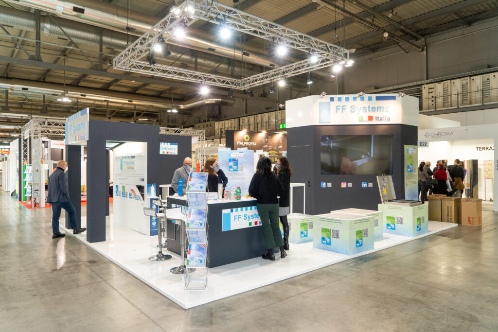 Dal progetto di design fino alla realizzazione dello stand, assistiamo il cliente in ogni fase per permettere di far emergere la personalità del brand durante le fiere di settore.